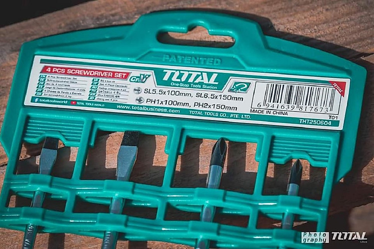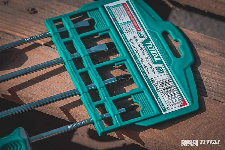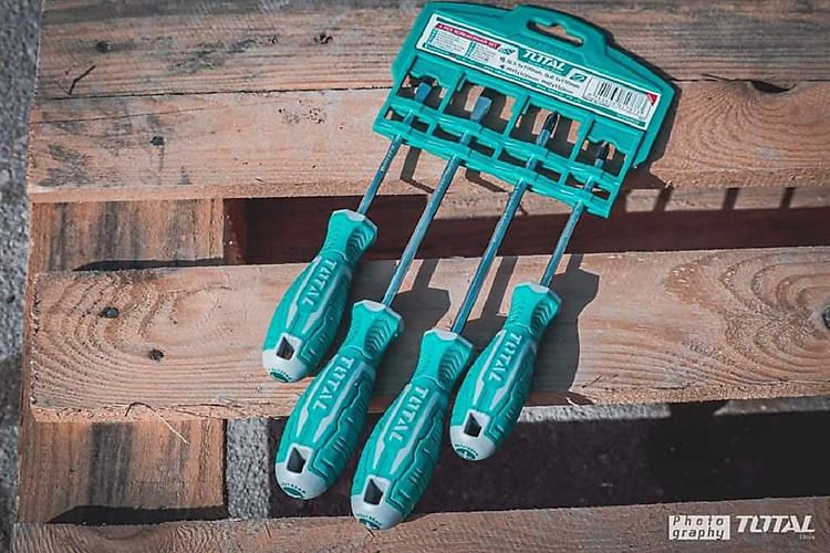 Bộ 4 cây tua vít dẹp, bake đa năng TOTAL THT250604 là bộ tua vít 4 chi tiết có thể sử dụng để tháo lắp hầu hết các thiết bị trong gia đình