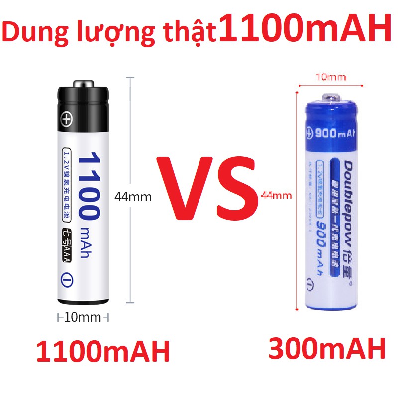 Pin tiểu AAA dung lượng 1100mAh sạc đầy trong vòng 3h-8h tùy bộ sạc.