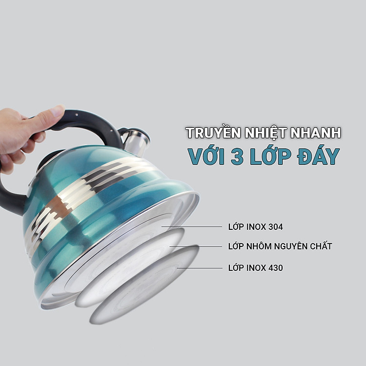Giữ nhiệt tốt: Cấu trúc đáy 3 lớp của ấm đun giúp bảo ôn nhiệt tốt, giữ cho nước ấm trong thời gian dài.