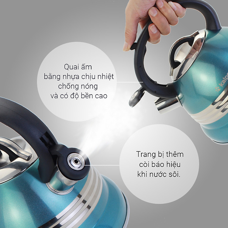 Còi báo tín hiệu: Ấm đun nước inox Kalpen KK01-3 lít được trang bị còi báo hiệu khi nước sôi, cực kỳ tiện dụng cho người sử dụng đặc biệt là đối với người bận rộn.