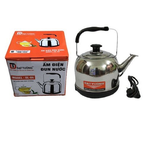 - Ấm điện đế liền cao cấp Đạt Trường ĐL-05 có dung tích 5L giúp người dùng có thể sử dụng nước thoải mái mà không phải đun nhiều lần. Ấm có quai và núm làm bằng nhựa chống cháy rất an toàn khi sử dụng. Ngoài ra, thân ấm cũn được làm bằng inox ngoại nhập, an toàn tron mọi nguồn nước.