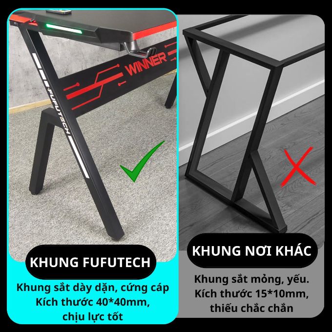 ️Hệ khung chân thép tại Fufutech có kích thước lớn nh.ất thị trường, kết cấu to, dày đạt chất lượng, không rung lắc.