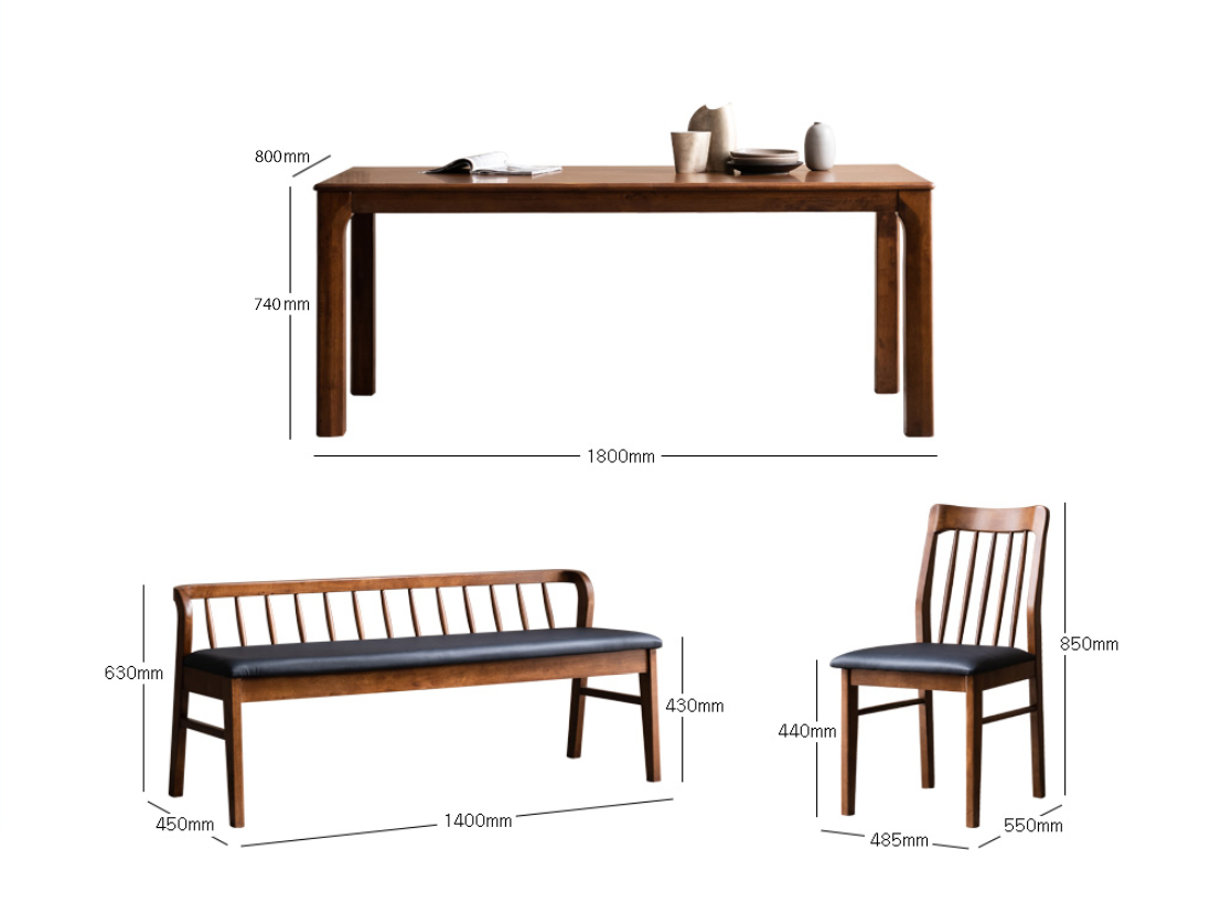 Bàn: 1800 x 830 x 740 mm (Dài x Rộng x Cao)