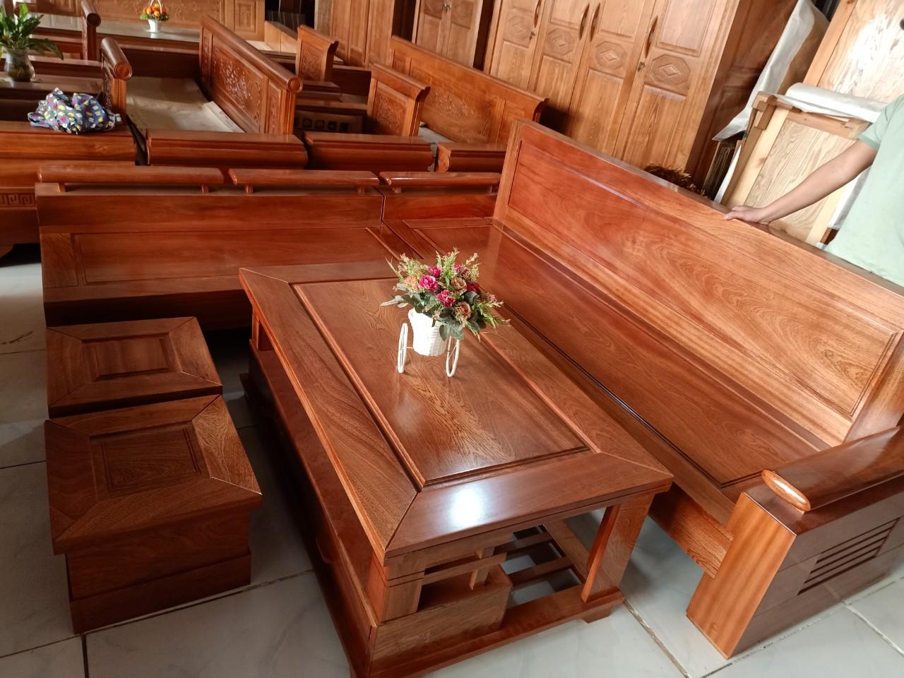 Bàn ghế phòng khách gỗ xoan đào mẫu góc tay trứng tựa liền nguyên tấm GTXL-01