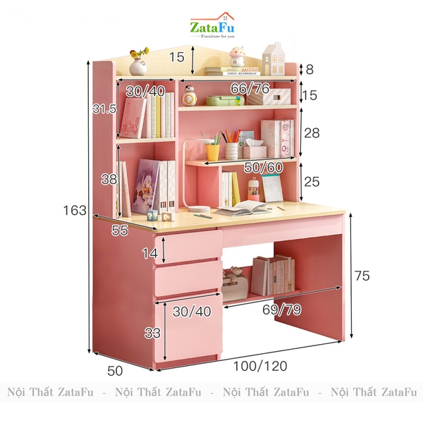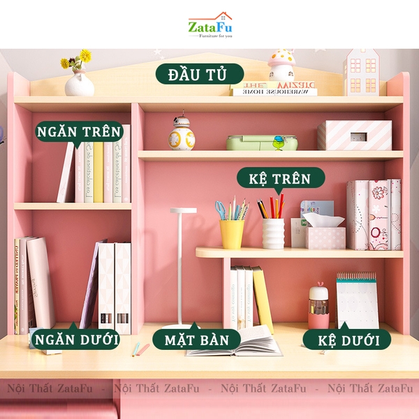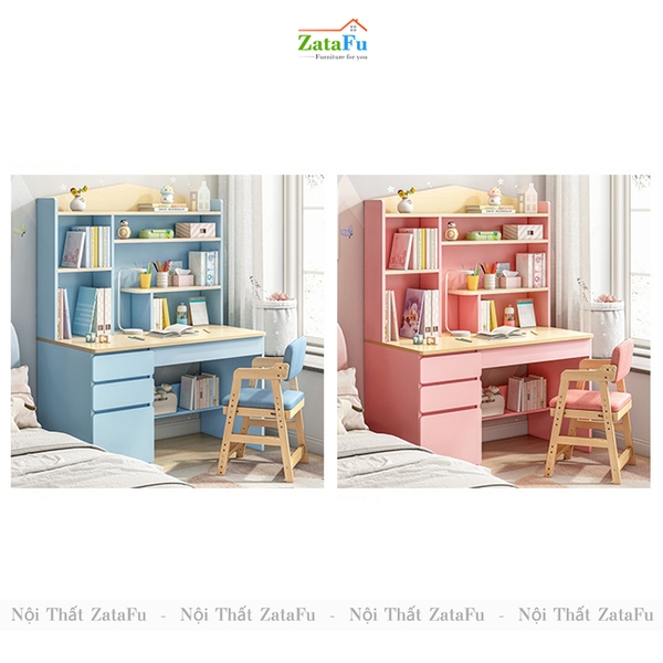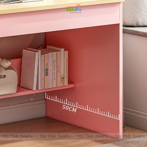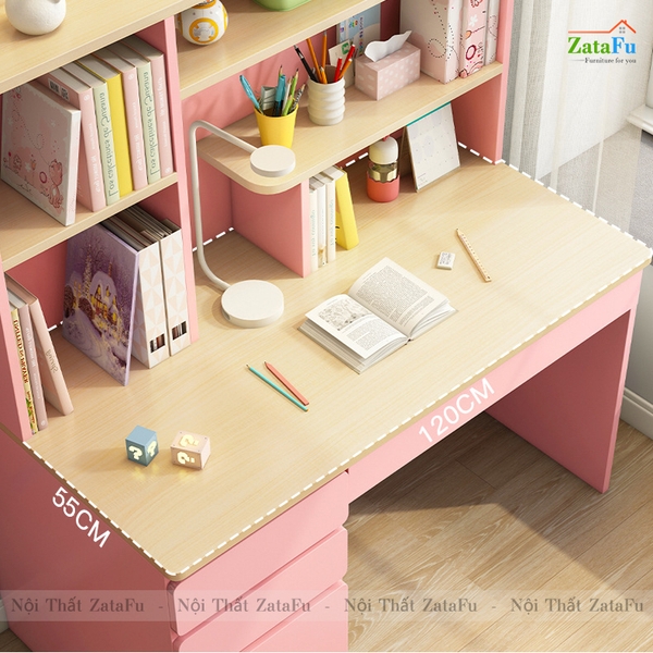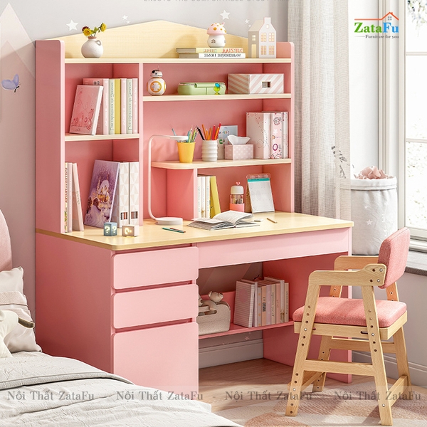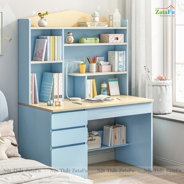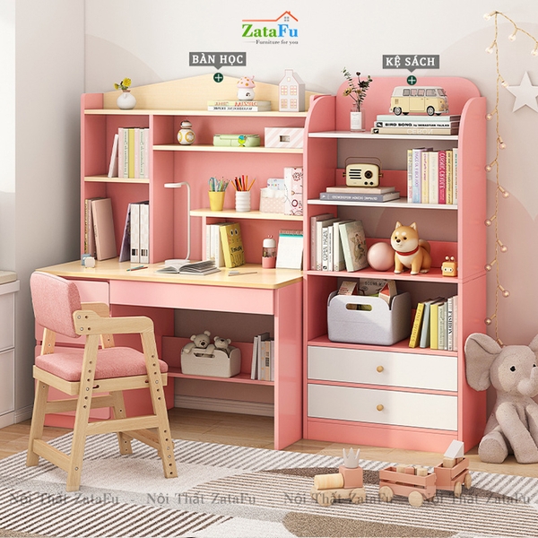 - Trong suốt chặng đường học tập của mình, khối lượng sách vở và kiến thức con phải học rất nhiều, vì vậy chiếc bàn học có đính kèm kệ sách sẽ giúp con có thêm nhiều vịu trí để cất sách vở và trưng bày đồ dùng học tập, tập cho con thói quen biết giữ gìn và bảo quản đồ đạc của mình, giữ vật dụng cũng như không gian phòng luôn sạch sẽ, ngăn nắp, tập cho con có thói quen tốt và rèn luyện cho con những đức tính tốt cần có ở một con người.