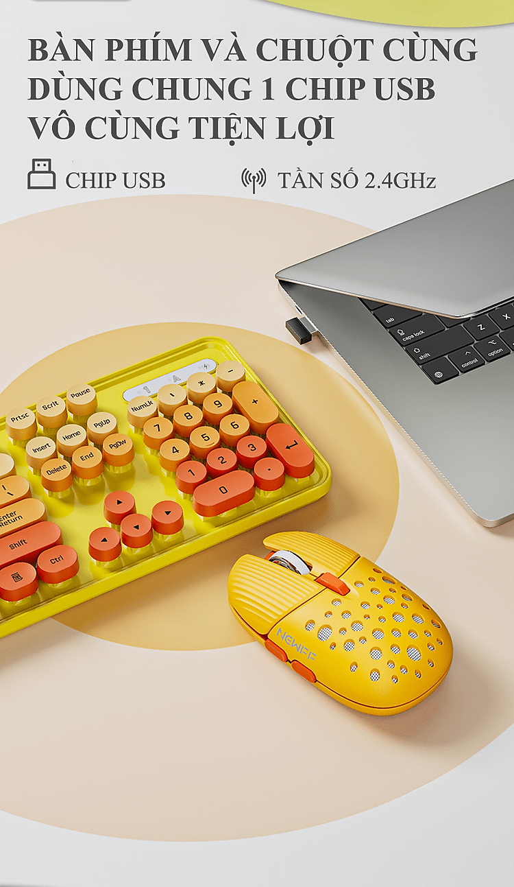 - Bộ bàn phím chuột không dây EF128 được thiết kế dễ thương, hiện đại với sự kết hợp của nhiều màu sắc mang lại sự trải nghiệm mới mẻ.