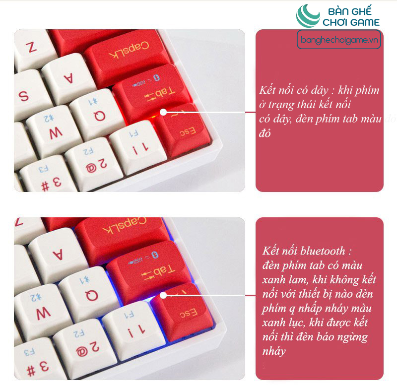 - Fn+tab nhấn giữ trong 3 giây để chuyển đổi chế độ có dây và bluetooth