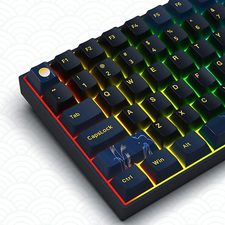 Không dây Bluetooth 5.0 / 2.4g – có dây USB Type-C – Đèn Led rgb – pin lithium 2000mah(100h) – giao diện type c – nhiều loại trục có thể thay thế – Keycap pbt thăng hoa nhiệt Cherry profile. Bố cục 84 phím , các phím chức năng được tối ưu nhỏ gọn và hợp lý đảm bảo tính thiết thực, tiết kiệm diện tích máy tính để bàn, kết cấu tổng thể đơn giản, gọn gàng. Keycap Cherry Profile in thăng hoa nhiệt 5D toàn phím. Bộ tranh minh họa hình ảnh đặc biệt độc đáo độc quyền, lấy nguyên mẫu Mây và Trăng sáng