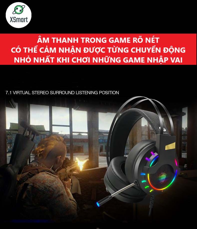 Bộ bàn phím cơ và chuột gaming XSmart kèm tai nghe chụp tai Super Bass headphone 7.1, combo full LED đổi màu siêu đẹp T907+V6+K3 - Hàng Chính Hãng