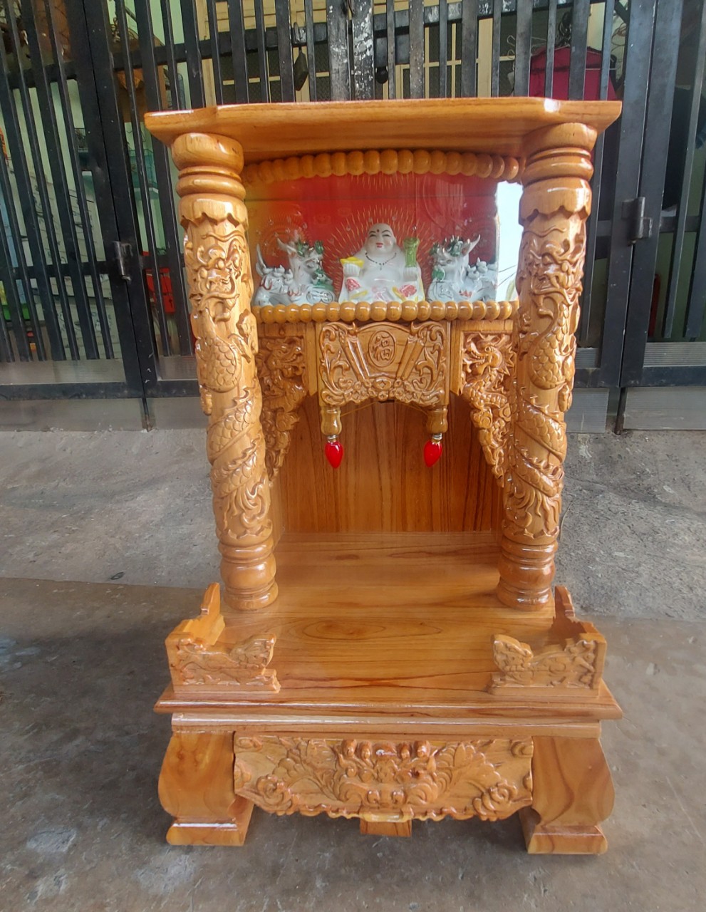 -Bàn thờ thần tài gỗ Xoan,có hộp đèn, có cột, mân ngăn kéo to