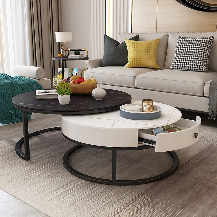 Bàn trà đôi tròn có hộc kéo mặt đá ceramic cao cấp BTS-91 sở hữu nhiều công năng hữu dụng, trong đó phải kể tới: