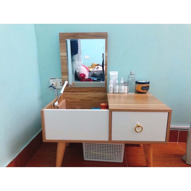 Bàn trang điểm bệt có gương gấp gọn chất liệu gỗ MDF phủ melanin cao cấp l Bàn trang điểm bệt có ngăn kéo, hộc tủ