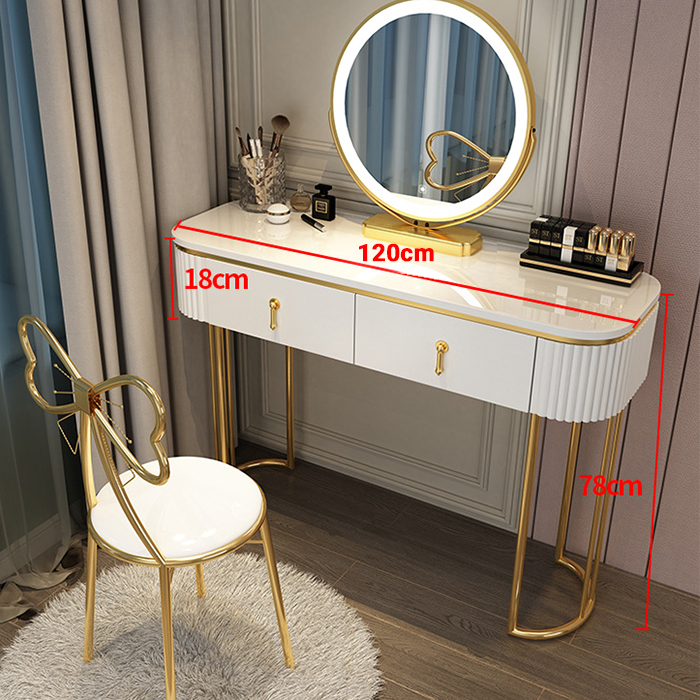- Chân bàn trang điểm mạ vàng sang trọng, đẹp mắt, bền đẹp