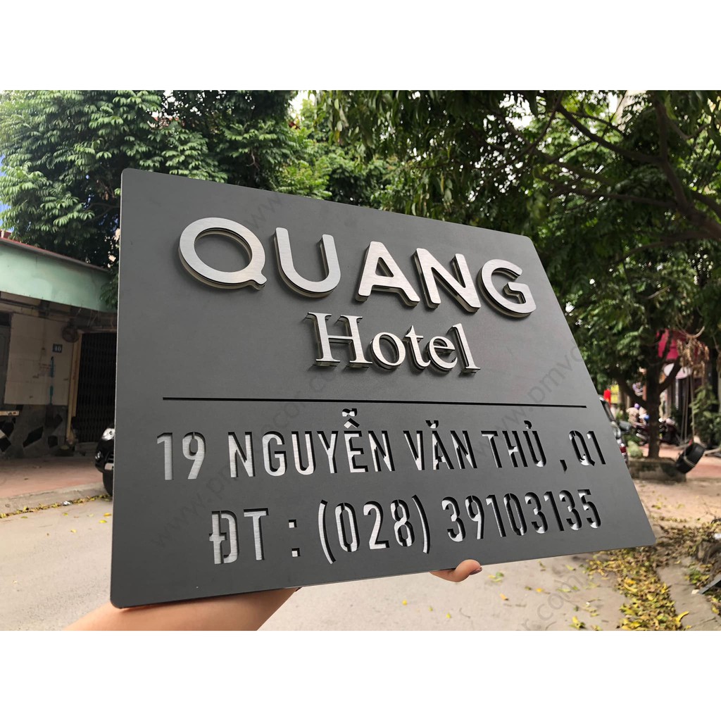 * Màu sắc: nền ghi chữ màu theo marquette, số nổi đế 8mm mặt xước bạc