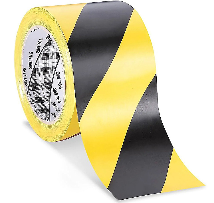 Băng keo dán nền chịu nhiệt sọc vàng đen 50mm x 3m 3M 766 được làm từ lớp màng vinyl với keo cao su, thường được sử dụng để dán kẻ vạch, phân làn, phân đường.