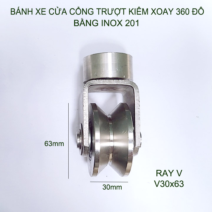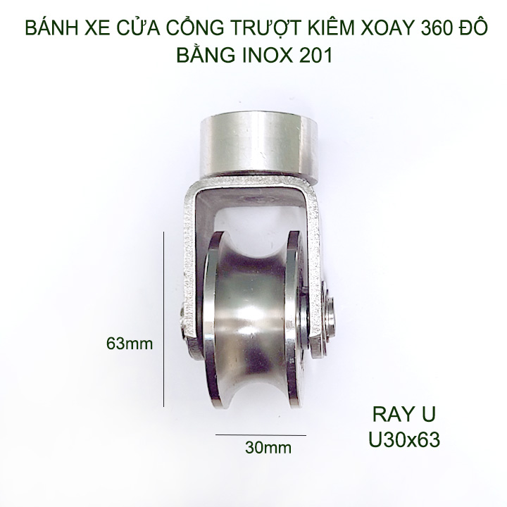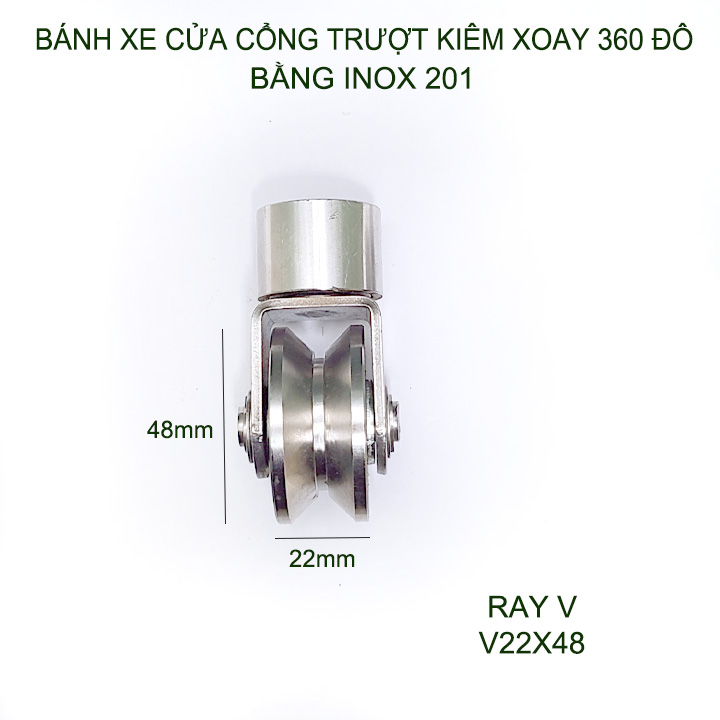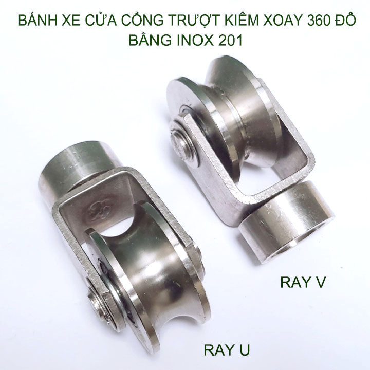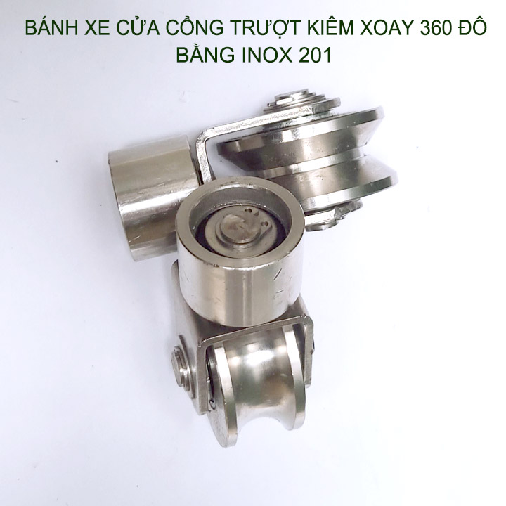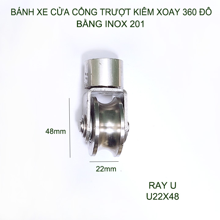 Bộ bánh xe cho cửa cổng trượt-lùa kiêm xoay 360 độ, làm bằng inox 201, Loại 22x48mm hoặc 30x63mm tùy chọnBánh xe cho cửa cổng trượt và xoay được thiết kế đơn giản với vật liệu inox 201 nguyên khối, k...