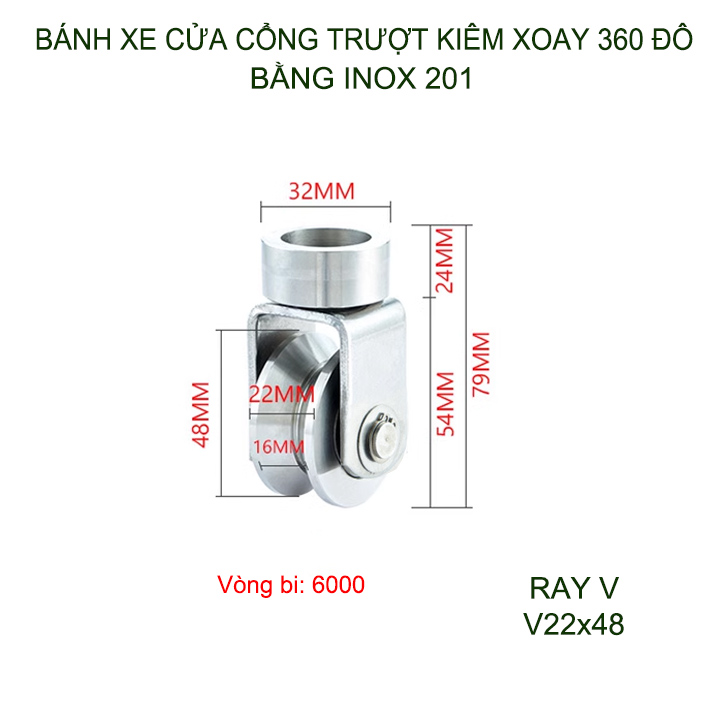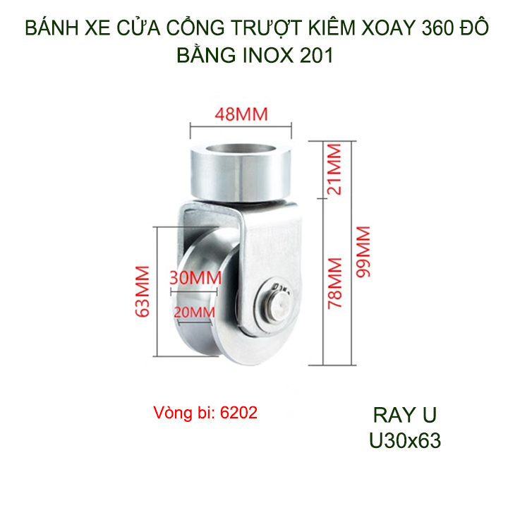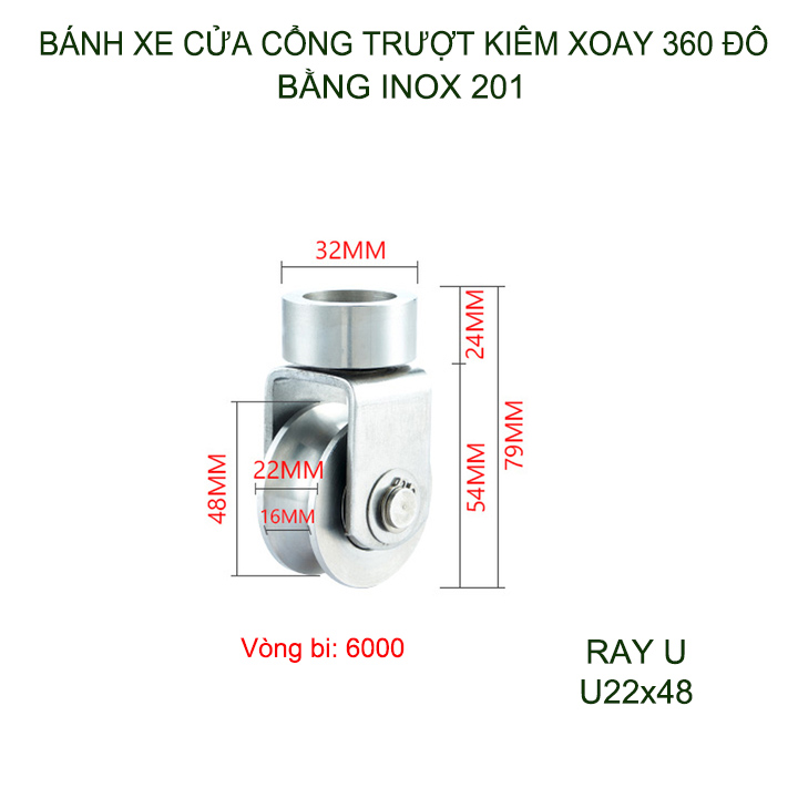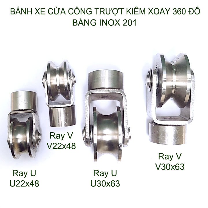 Giới thiệu Bộ bánh xe cho cửa cổng trượt-lùa kiêm xoay 360 độ, làm bằng inox 201, Loại 22x48mm hoặc 30x63mm tùy chọn
