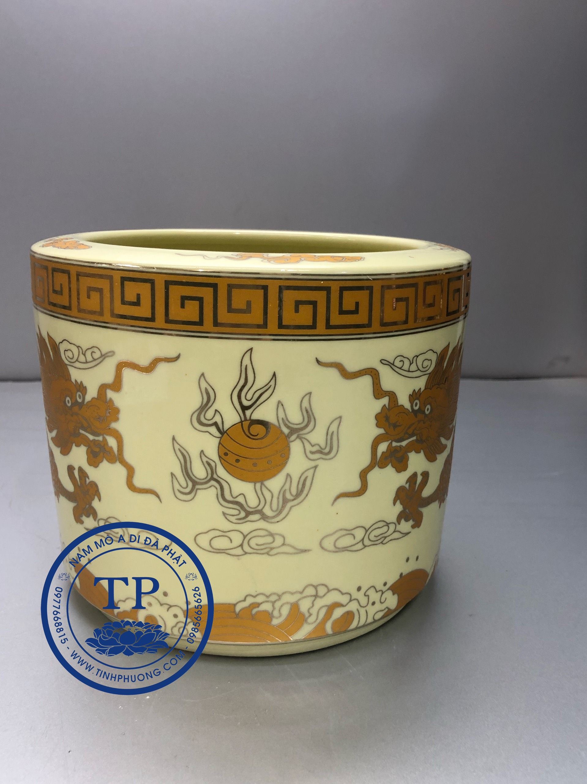 Bát Nhang Bằng Sứ Rồng Vàng mẫu hình ống