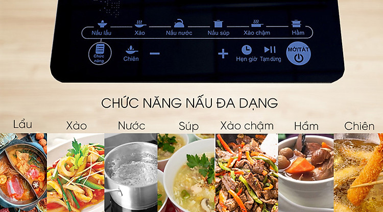 Các chế độ nấu gồm: nấu lẩu, xào, xào chậm, chiên, hầm, nấu nước, nấu súp.