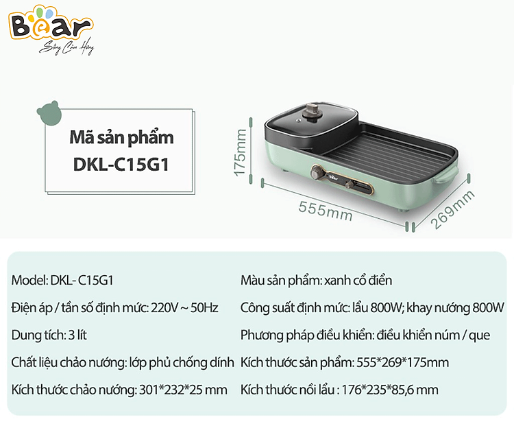 Nhãn hiệu: Bear | Xem thêm các sản phẩm Bếp lẩu, nướng của Bear