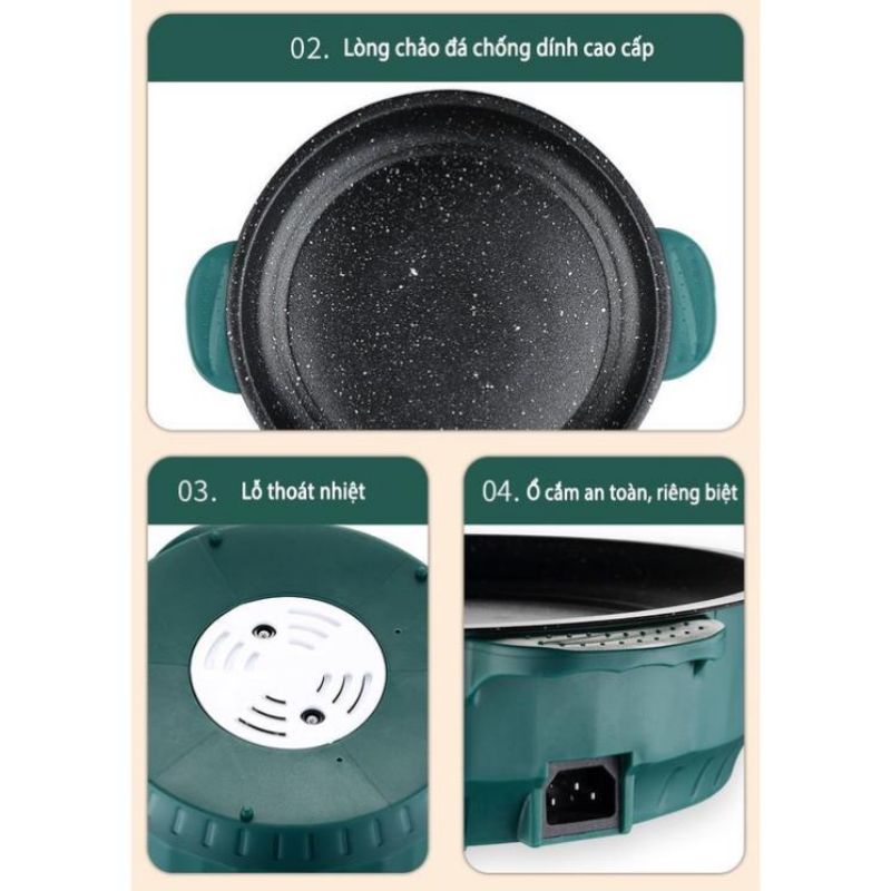Chảo nướng điện chống dính mini,Bếp Nướng Thịt BBQ Bằng Điện Đường Kính 26 cm Kiểu Hàn Quốc - Hàng Chín Hãng