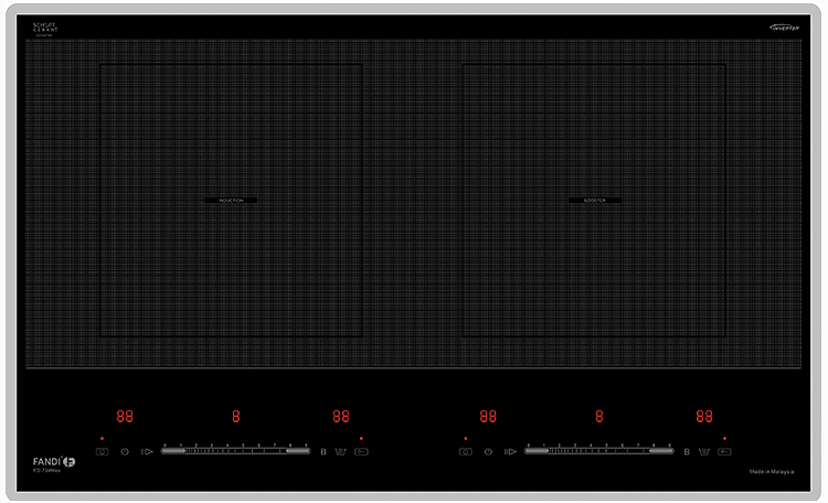 | Chất liệu | Mặt kính Schott Ceranvát 4 cạnh, bo viền 4 cạnh bằng hợp kim nhôm cao cấp |