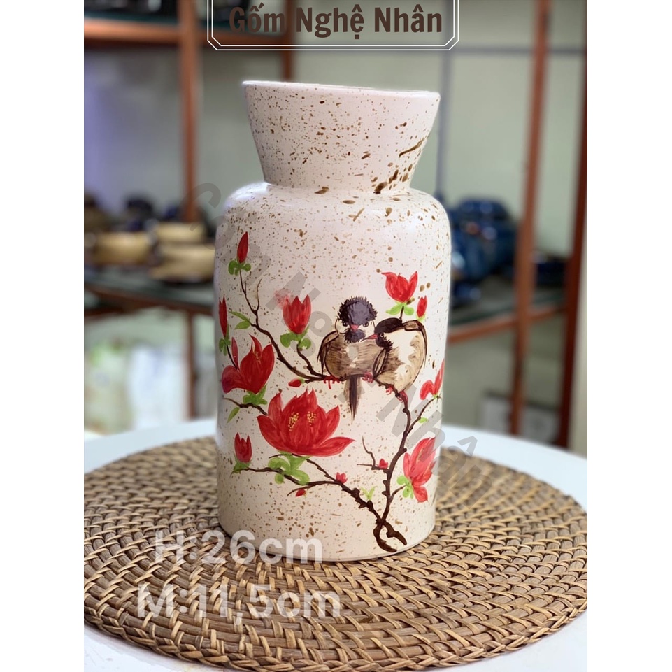 Bình cắm hoa decor siêu đẹp, vò cắm hoa gốm vuốt tay, vẽ tay Bát Tràng dáng lá trụ - Gốm Nghệ Nhân