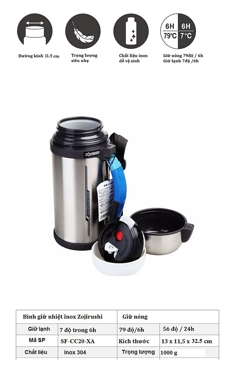Bình giữ nhiệt Zojirushi SF-CC20-XA được thiết kế với kiểu dáng trẻ trung, kết hợp màu Inox trang nhã, sẽ là chiếc bình đựng nước tiện ích và mang lại vẻ đẹp năng động cho bạn khi ra ngoài.