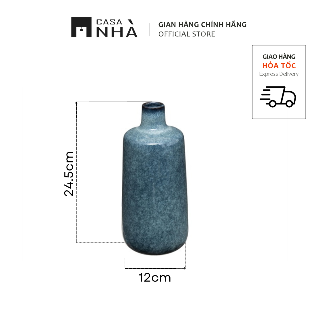 Với hình trụ đứng đơn giản và hiện đại, bình có cổ nhỏ và dáng thon dài, tạo nên vẻ thanh lịch và tối giản.
