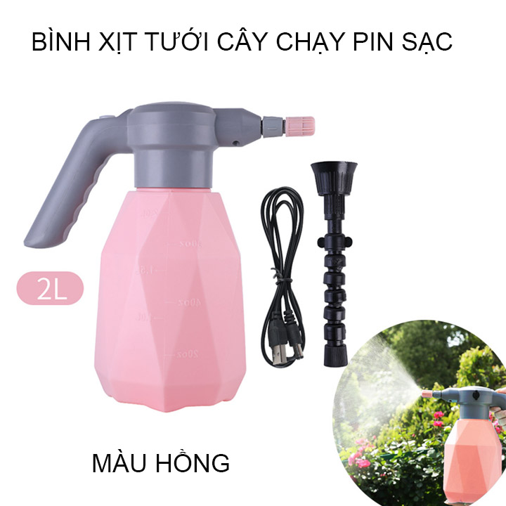 Bình xịt tưới cây dùng chạy pin sạc được thiết kế thông minh, sáng tạo, giúp việc chăm sóc tưới cây cảnh đơn giản và dễ dàng. Bình trang bị pin sạc gắn bên trong, hết pin lại sạc rất tiện dụng