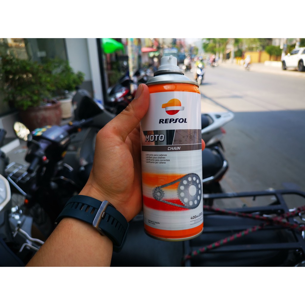 Ô tô > Dầu nhớt và phụ gia ô tô > Mỡ & Chất bôi trơn || Bình Xịt Bảo Dưỡng Sên Repsol Moto Chain 400ml