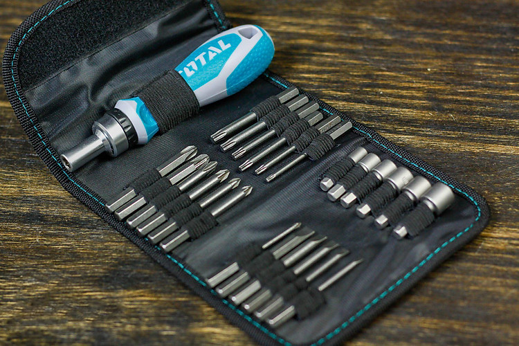 -26 cái đầu vít gồm: 1 cái đầu giữ ratchet, 18 cái đầu vít dài 65mm size: PH0, PH1, PH2, PH3, PZ1,PZ2, PZ3, SL3, SL4
