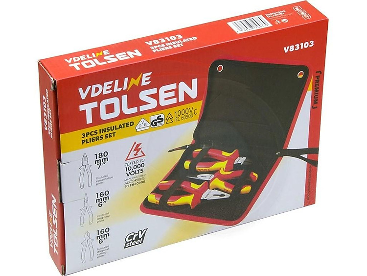 Sản phẩm kìm cắt cách điện 1000V TOLSEN V83103 là một mẫu thiết kế sản phẩm kìm cắt đa năng cầm tay cao cấp mới nhất đến từ thương hiệu chuyên thiết kế, sản xuất, lắp ráp, cung cấp các thiết bị và dụng cụ công nghiệp dân dụng cỡ lớn và các loại dụng cụ cầm tay đa năng chuyên nghiệp nổi tiếng về chất lượng và hậu mãi tuyệt vời TOLSEN TOOLS xuất sứ đến từ Trung Quốc. Sỡ hữu thiết kế chuyên dụng và đơn giản, với kiểu dáng chuyên nghiệp trong công việc, với các bộ phận cấu tạo của sản phẩm đều được nhập khẩu từ các quốc gia có nền công nghiệp, cơ khí phát triển mạnh mẽ trên thế giới và được trải qua các quy trình chế biến và gia công tỉ mỉ giúp cho sản phẩm kìm cắt đạt được độ chính xác cao và khả năng cắt tốt nhờ vào đầu cắt được mài vô cùng sắc bén nhờ vào quá trình gia công. Đi cùng với tính cơ động cao nhờ vào kích thước nhỏ gọn và vừa phải giúp cho sản phẩm kìm cắt có thể được dễ dàng vận chuyển, đi lại với số lượng lớn khi phải đi công tác và dễ dàng thay đổi, tháo rời các bộ phận sản phẩm để tiến hành bảo trì, thay thế khi xảy ra sự cố, và còn nhiều tính năng và công dụng khác, sản phẩm kìm cắt cách điện 1000V TOLSEN V83103 là loại sản phẩm kìm cắt cách điện cầm tay đa năng và an toàn không thể thiếu dành cho các lĩnh vực đầu tàu kinh tế với yêu cầu rất khắt khe về độ chính xác và chất lượng sản phẩm như công nghiệp, cơ khí, chế tạo, lắp ráp, sửa chữa, điện lực sản phẩm cũng có thể phục vụ rất tốt cho các nhu cầu làm việc tại gia như sửa chữa mạng điện.