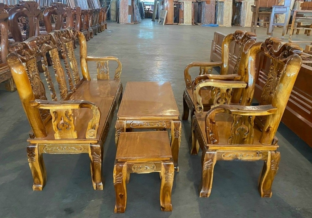 Bàn ghế phòng khách bằng gỗ tự nhiên được thiết kế với phong cách cổ