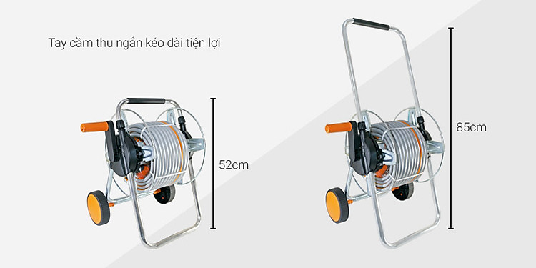 Với bộ xe cuộn ống nước tưới cây GF5789 bạn dễ dàng cuộn ống nước lại và di chuyển thật dễ dàng bằng xe đẩy, đến nơi có nguồn nước và các vị trí cần tưới. Khi tưới xong bạn thu ống lại dễ dàng và cất gọn gàng ở một góc vườn.