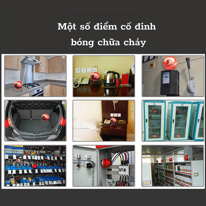 Chữa cháy tự động: Bạn hãy đặt những quả bóng chữa cháy ở những nơi có nguy cơ hoặc tiềm tàng dễ xảy ra hỏa hoạn để phòng ngừa như: Nhà xưởng, Nơi có ổ nguồn điện, Nhà bếp, trên xe ô tô… Quả bóng sẽ tự động kích hoạt kíp nổ làm vỡ tung quả bóng dập tắt lửa kịp thời khi chúng ta không có mặt giúp ngăn chặn ngọn lửa bùng phát thành những đám cháy lớn.