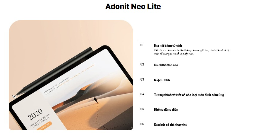 Adonit là thương hiệu bút cảm ứng nổi tiếng nhất thế giới từ năm 2012 đến nay đến từ USA và sản xuất tại Taiwan. Có mặt tại Việt Nam từ năm 2013 Adonit đã trở nên quá quen thuộc với các Designer, các nhân viên văn phòng, ngân hàng sử dụng bút cảm ứng trong ứng dụng ghi chú, mỹ thuật và thiết kế đồ họa