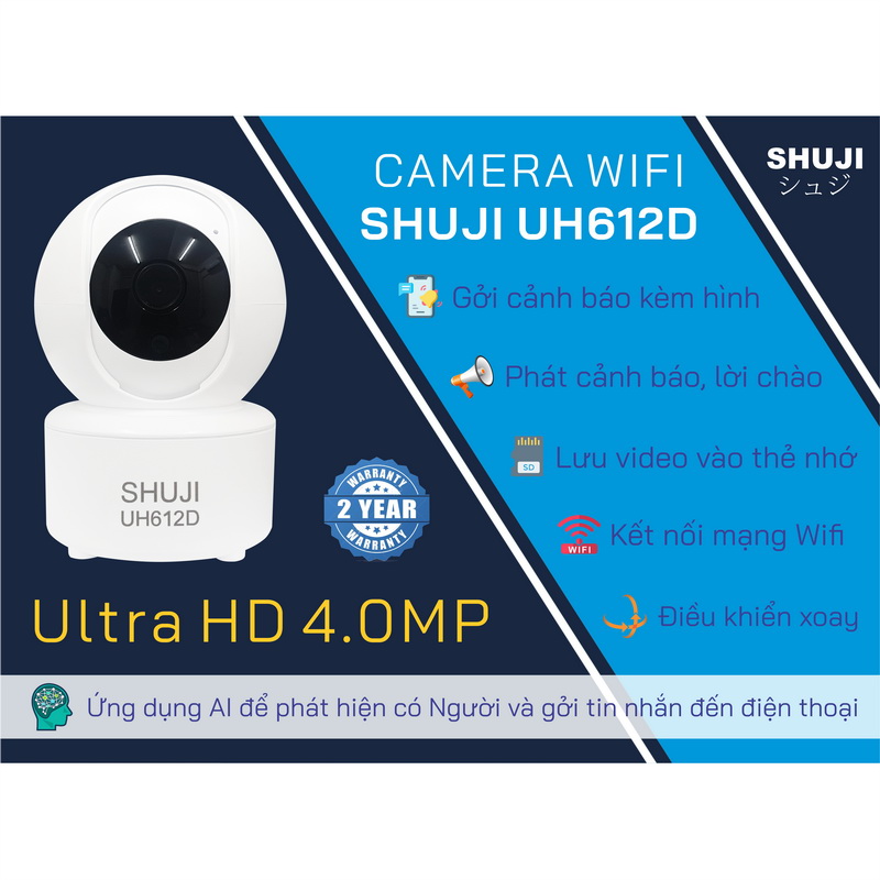 Camera Wifi SHUJI UH612D (ULTRA HD 4MP, XOAY)- BH 24 tháng cho camera wifi và thẻ nhớ.