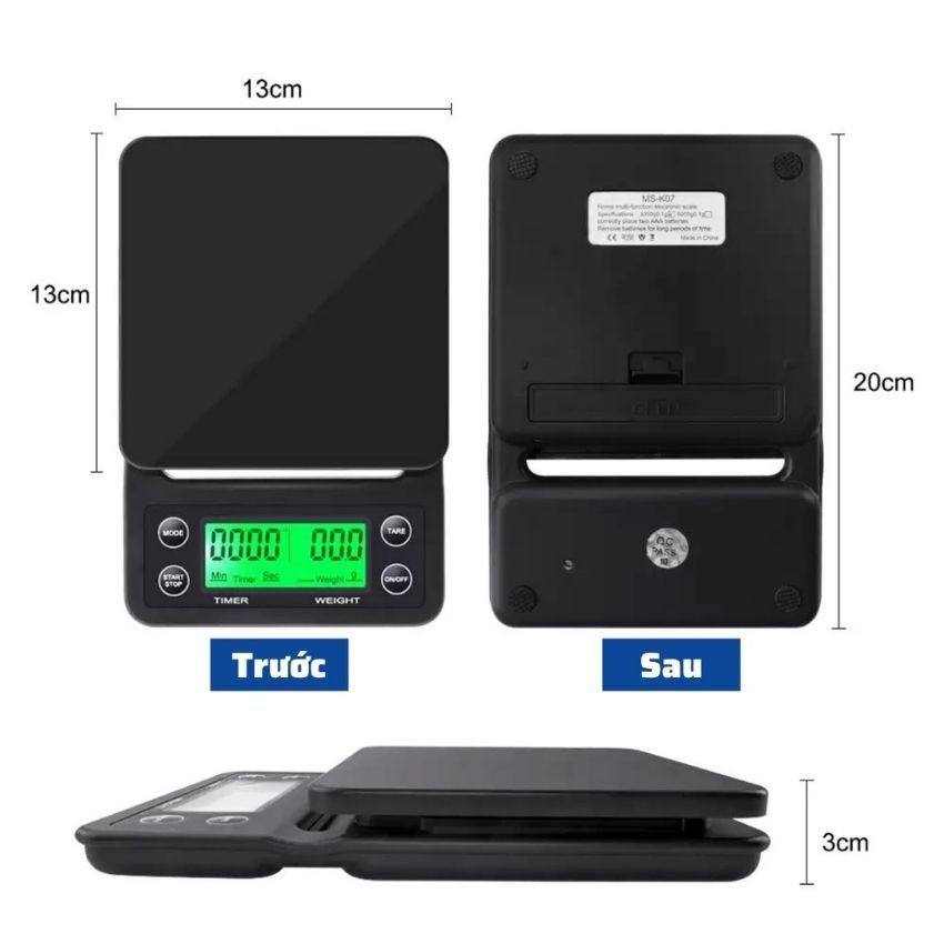 Cân Pha Cà Phê Tiểu Ly Điện Tử Mini Cafe Rang Xay Định Lượng 0.1g 3kg Độ Chính Xác Cao Nhà Bếp Làm Bánh