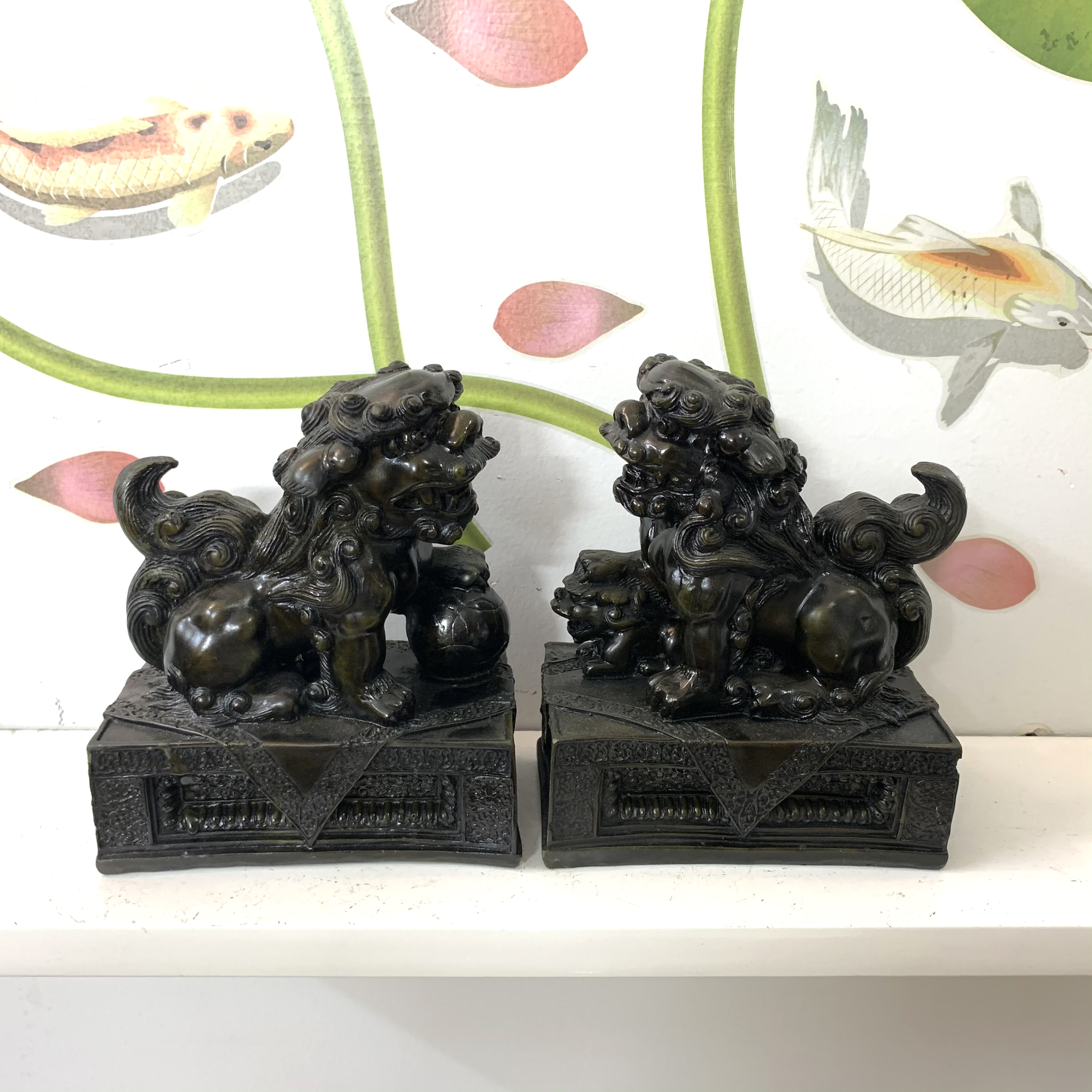 Cặp 2 tượng kỳ lân trang trí phong thủy - Màu nâu - Chiều cao 15cm - Đá Composite