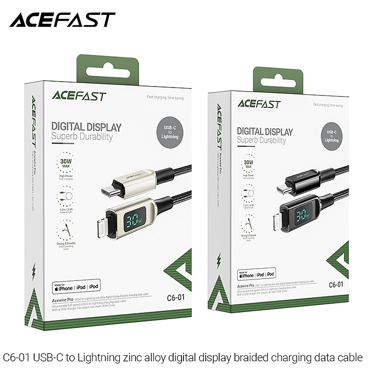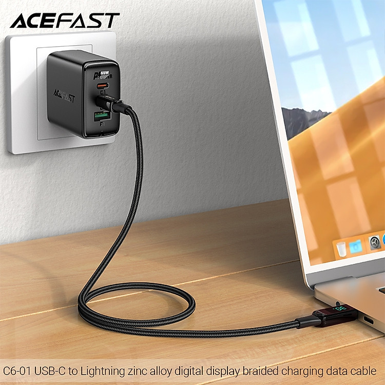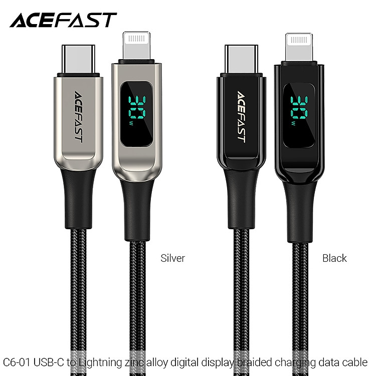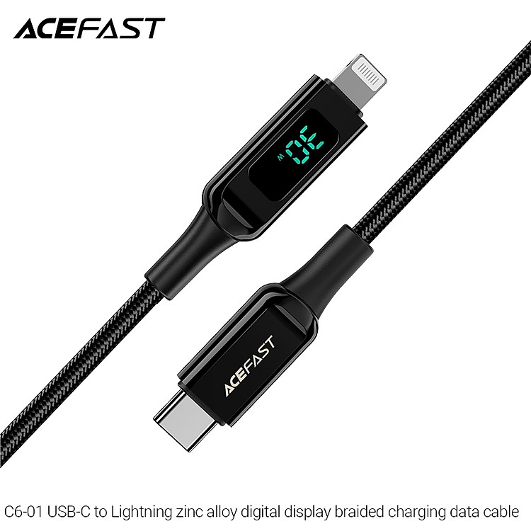 Cáp ACEFAST C6-01 Type C to Light.ning, dòng điện lên đến 3A, chiều dài 1.2m
