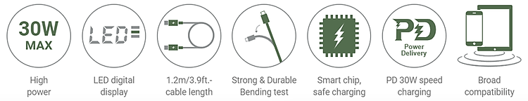 - Tính năng 1: Hỗ trợ sạc nhanh PD 30W, tương thích với i.phone 12 series sạc nhanh PD 20W.