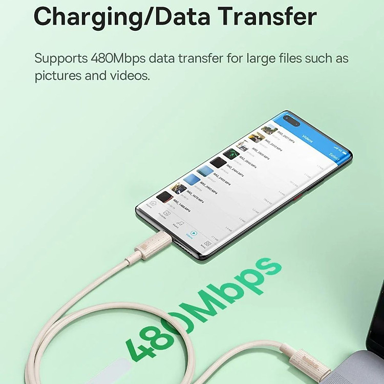 -Dây cũng hỗ trợ tốc độ truyền tải dữ liệu lên đến 480mbps. Các dữ liệu như hình ảnh, tài liệu đều sẽ được truyền tải nhanh chóng mà không ảnh hưởng đến tốc độ sạc của thiết bị.