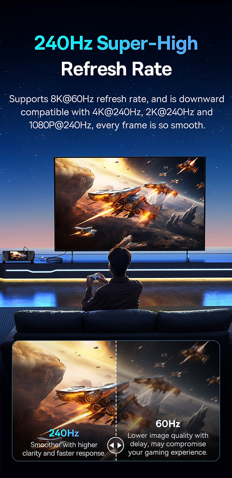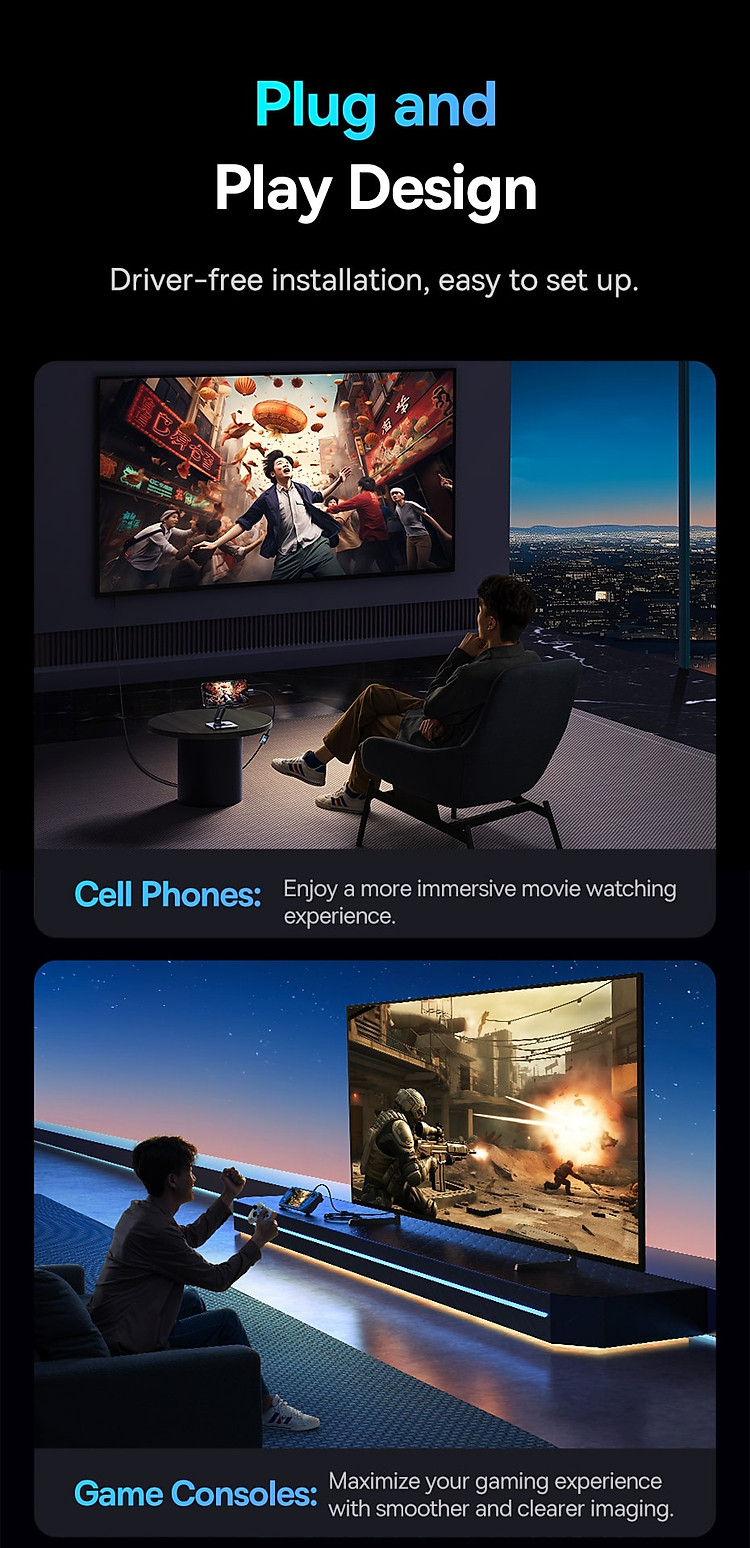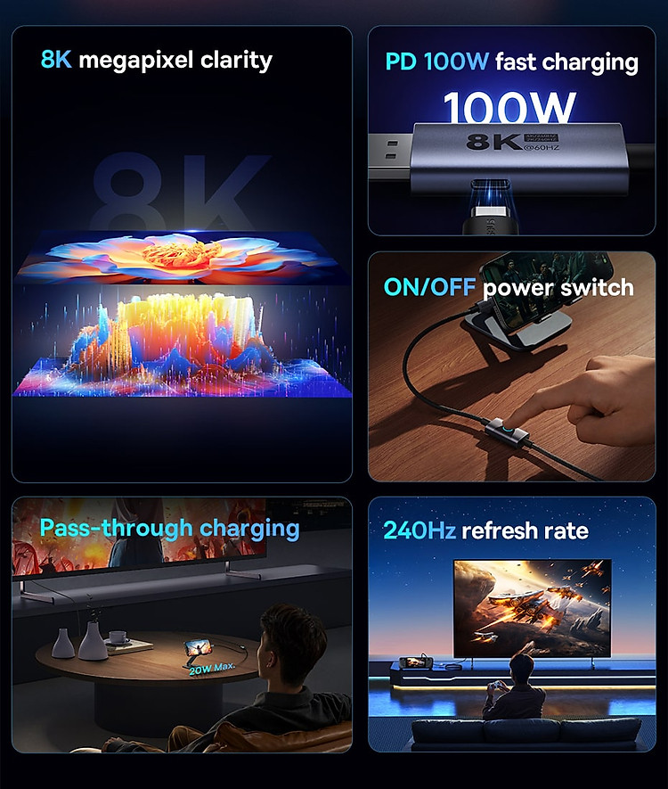 Độ Phân Giải 8K: Với khả năng hỗ trợ độ phân giải 8K, cáp chuyển đổi này mang đến trải nghiệm hình ảnh sắc nét và chất lượng cao, phù hợp cho việc làm việc, giải trí, hoặc chơi game.
