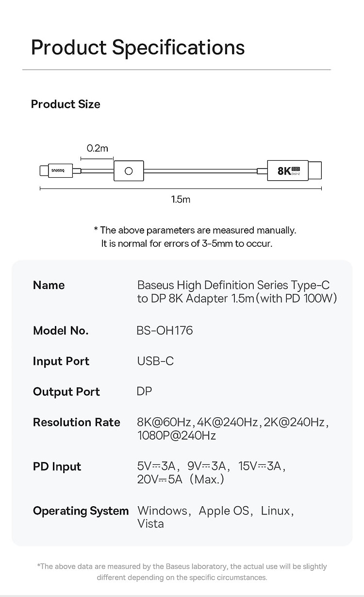 | Tên | Cáp Chuyển Đổi Baseus High Definition Series Type-C to DP 8K Adapter |