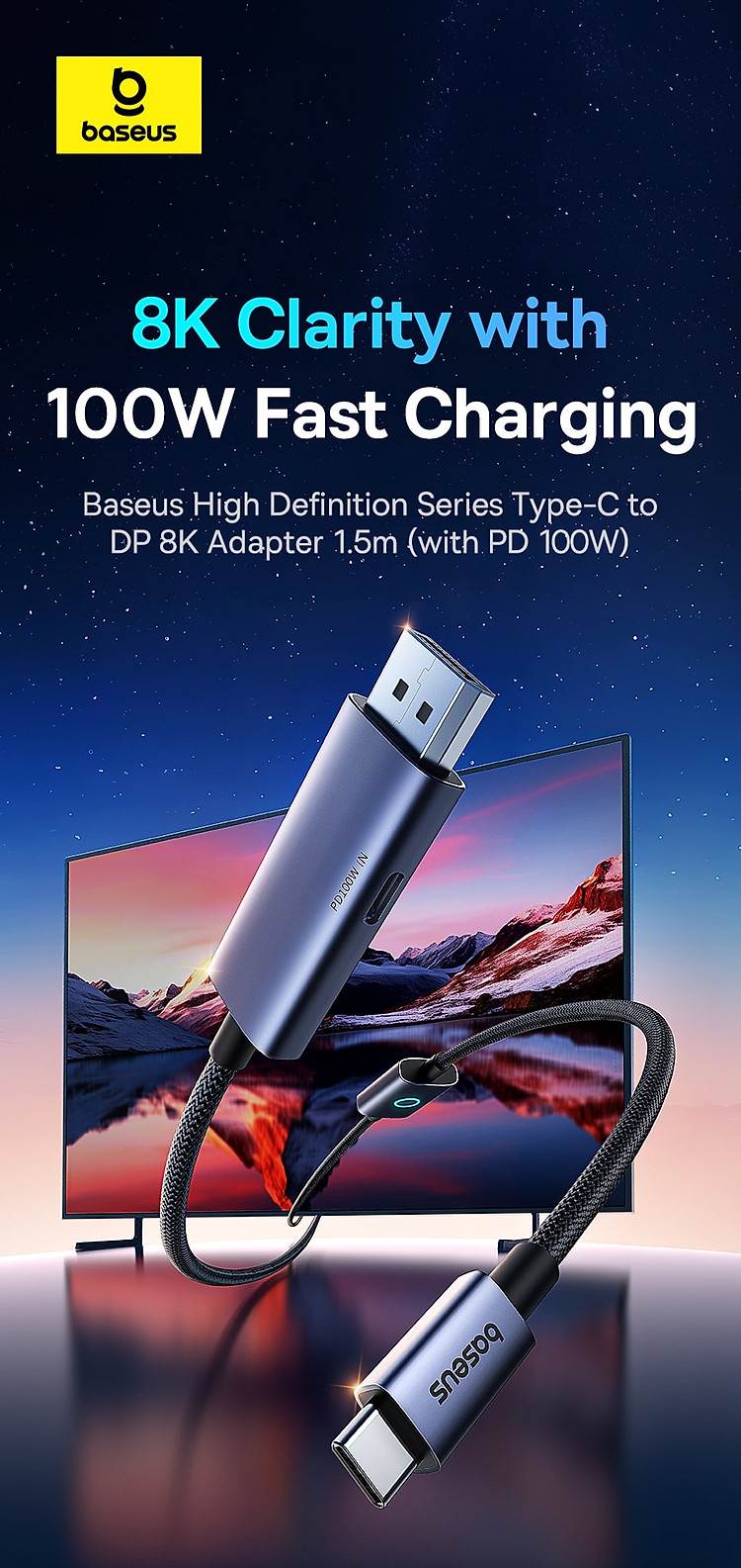 Với Baseus High Definition Series Type-C to DP 8K Adapter, bạn có thể tận hưởng chất lượng hình ảnh ấn tượng và trải nghiệm đa phương tiện cao cấp trên màn hình lớn mà không gặp vấn đề về độ phân giải.