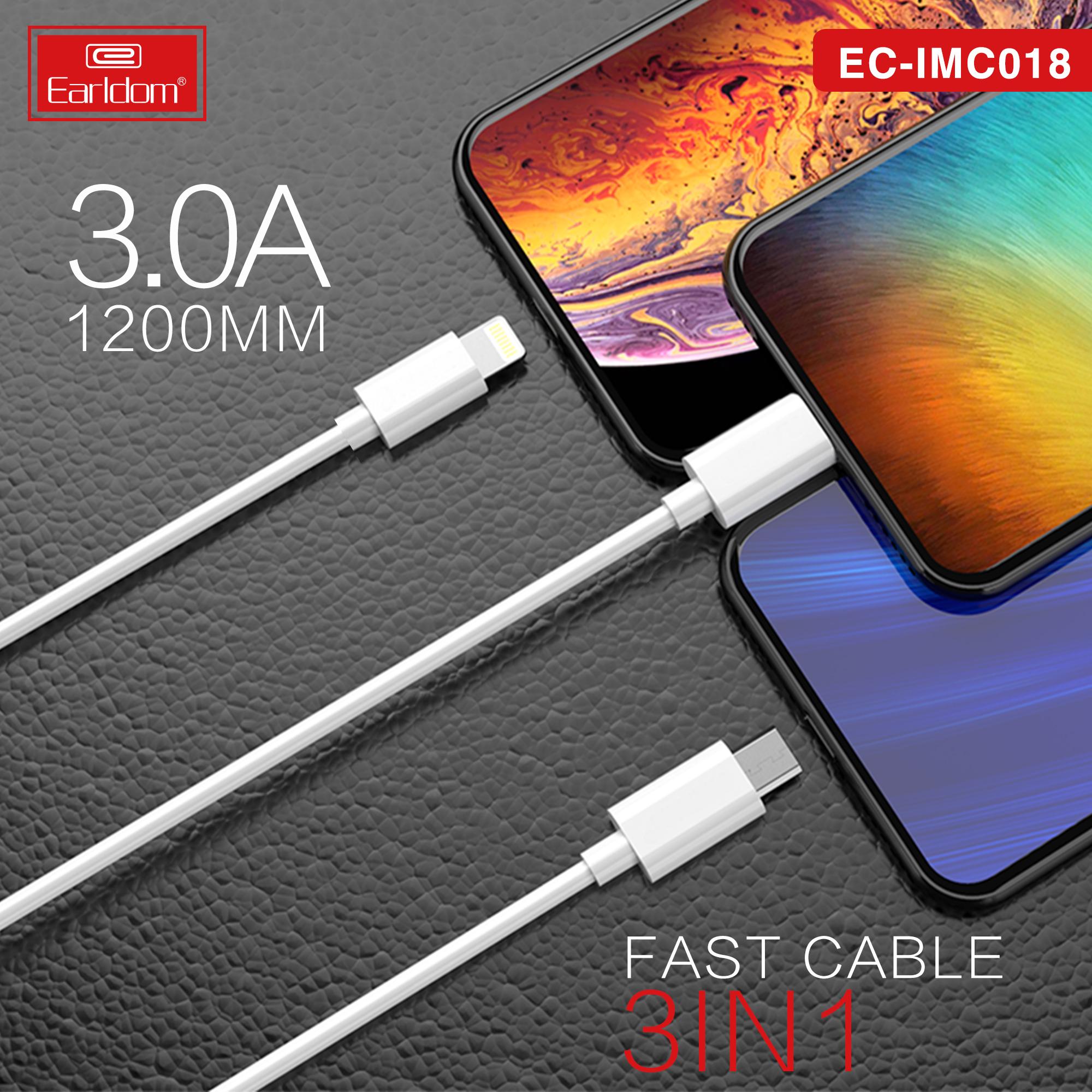 Cáp Sạc 3 Đầu Chính Hãng Sạc Nhanh 3A EARLDOM IMC-018 Dài 1,2M TÍch Hợp 3 Đầu Type-C, Lightning, Micro | Hàng Chính HÃng