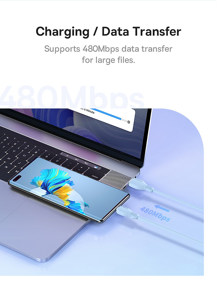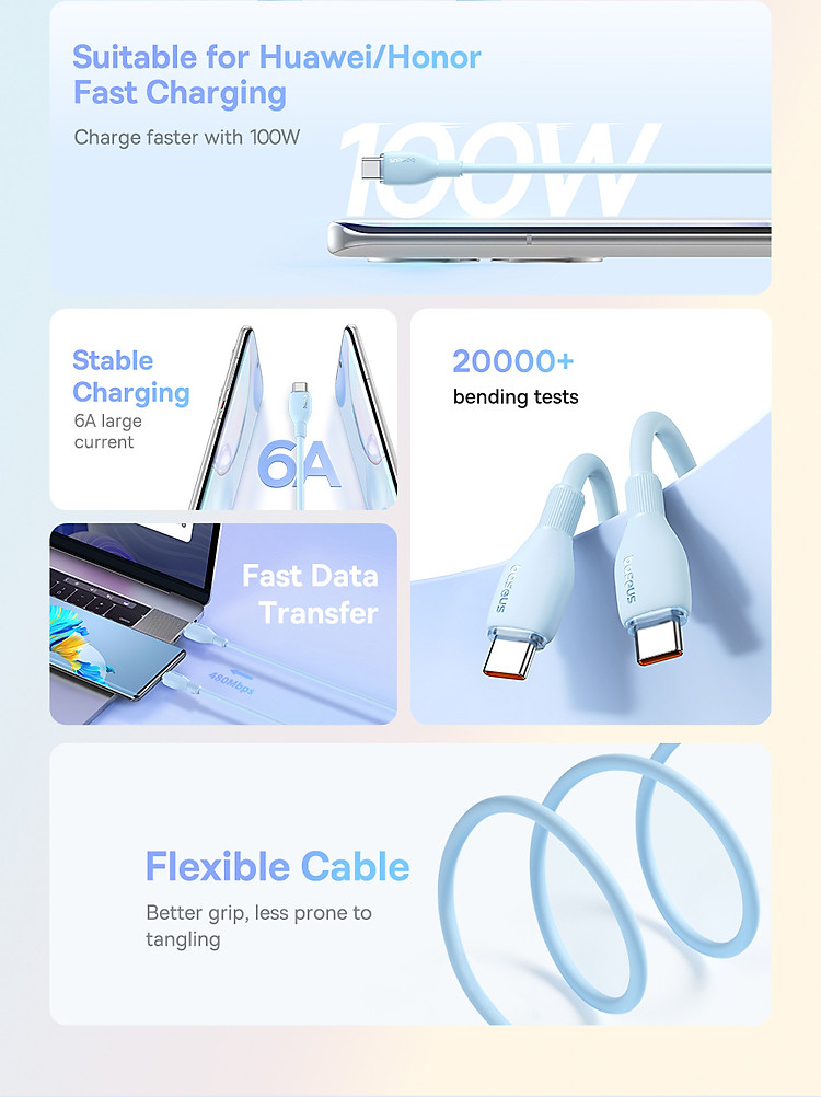 Với công suất sạc lên đến 100W, cáp này cho phép bạn nạp năng lượng nhanh chóng cho các thiết bị như điện thoại di động, máy tính bảng, laptop và các thiết bị khác hỗ trợ công nghệ sạc nhanh.