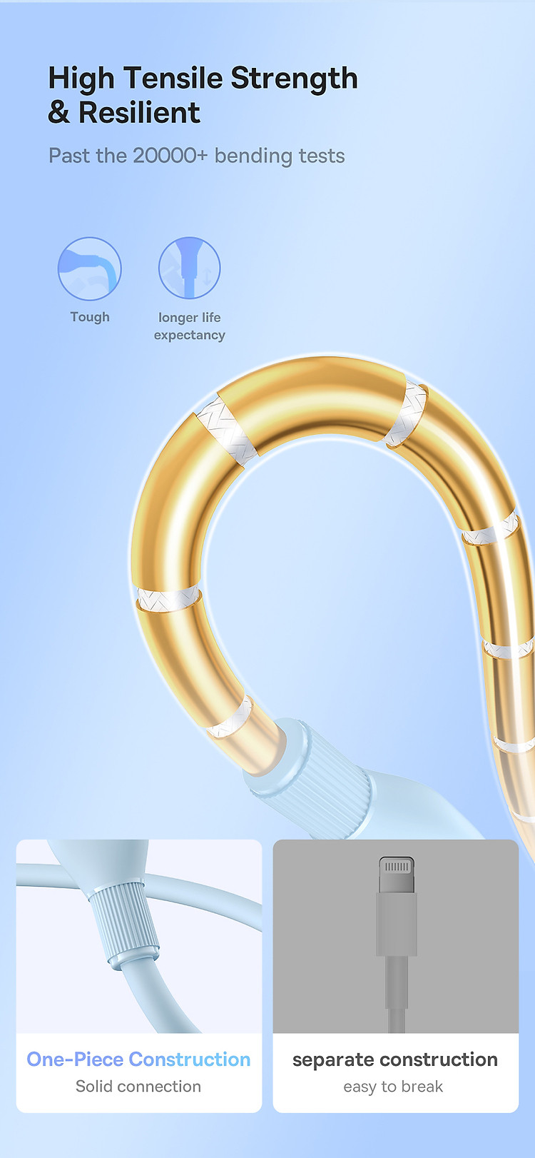 Baseus Pudding Series Fast Charging Cable được chế tạo với vật liệu chất lượng cao, đảm bảo độ bền và độ tin cậy trong quá trình sử dụng. Đầu cáp USB được làm bằng hợp kim nhôm chất lượng, cho độ bền và khả năng chống oxi hóa tốt.