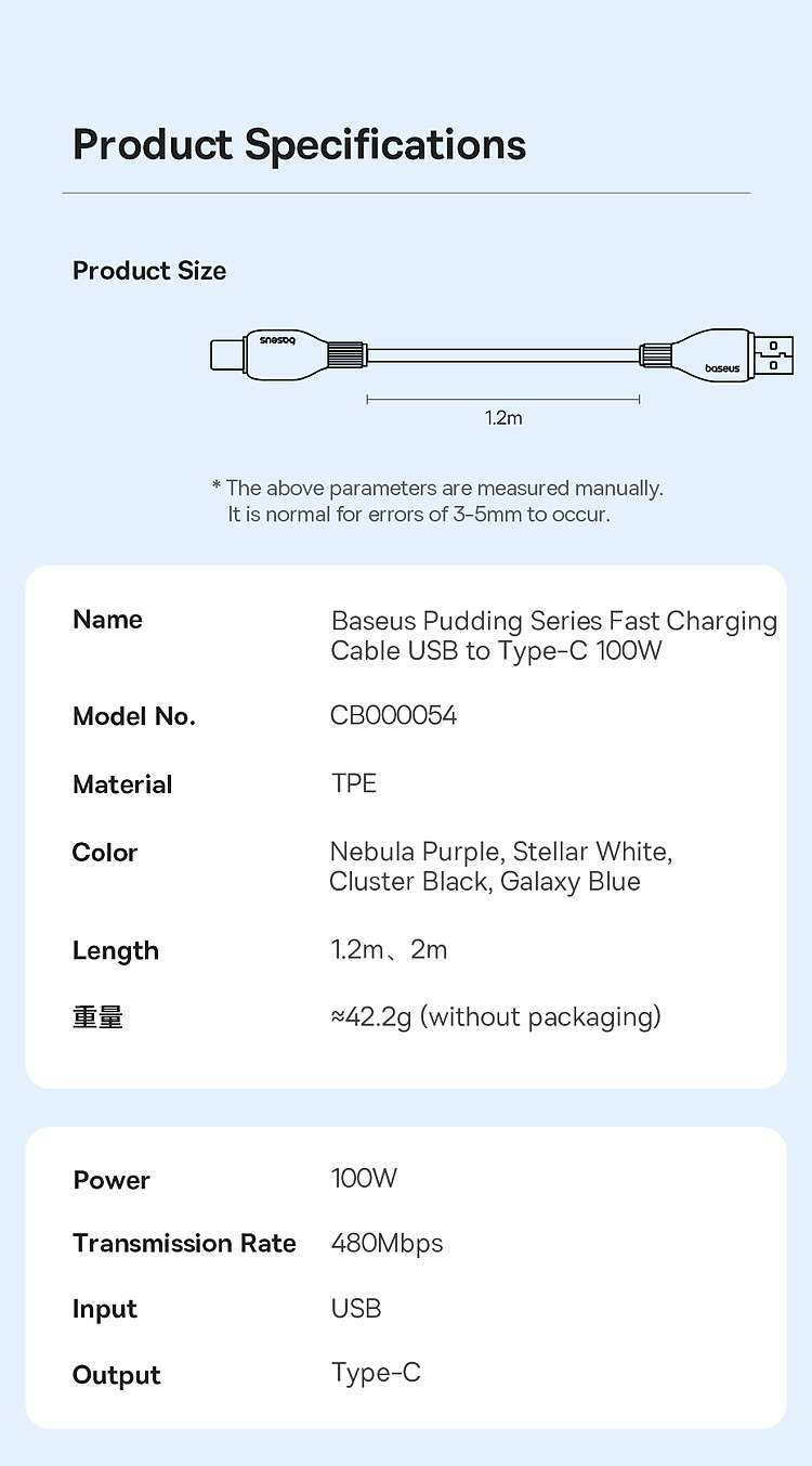 | Tên | Cáp Sạc Nhanh Baseus Pudding Series Fast Charging Cable USB to Type-C 100W |